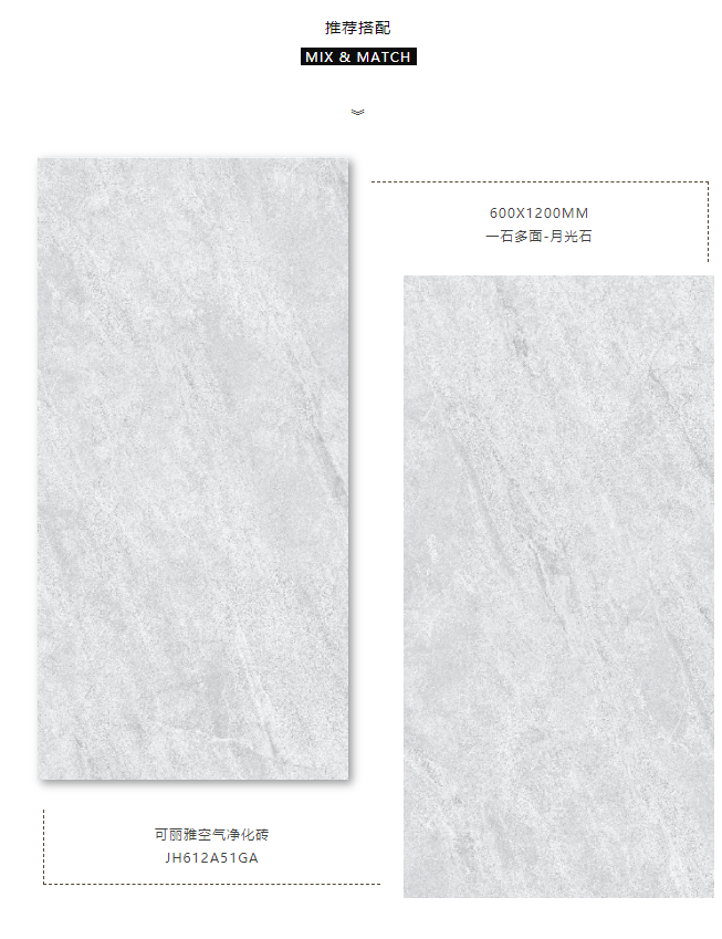 質(zhì)感是它的外表,百搭是它的性格,600X1200MM恰到好處的高級(jí)感,簡(jiǎn)單鋪貼也能展現(xiàn)出個(gè)中精華。