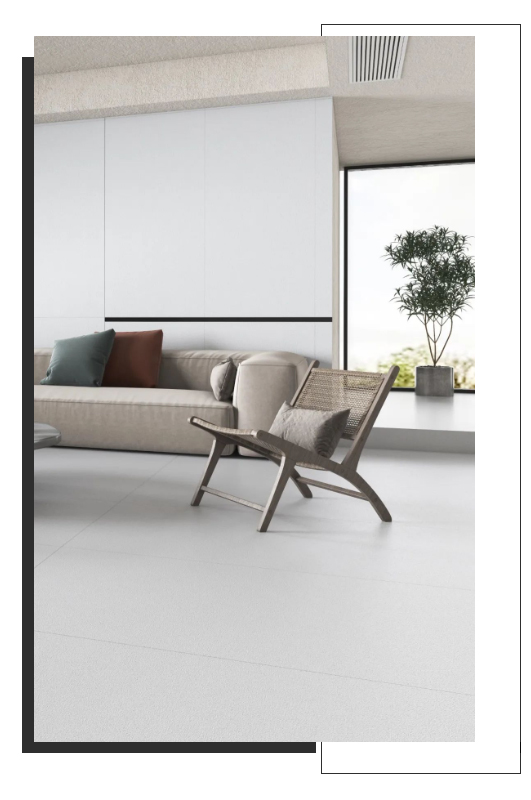 宋素|凡古磚以簡練的方式在地面徐徐展開,細沙干粒半拋工藝所帶來的天然質樸,與空間融合出素色的優雅與寧靜,不爭不搶,更符合時下國人流行的生活態度。