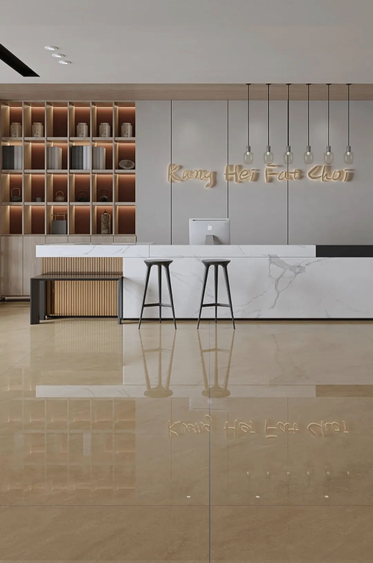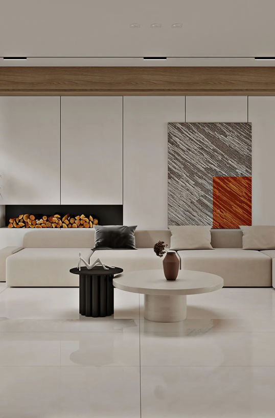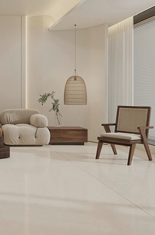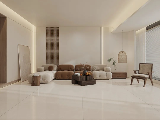無論身處哪個季節,暖色調瓷磚總能為家定下溫暖恬適的基調。塞納淺啡簡潔明快的米色系搭配木質家具元素,不僅組合出富有親和力的客廳空間,簡約大氣的氛圍中還透露著悠閑自在的生活態度。